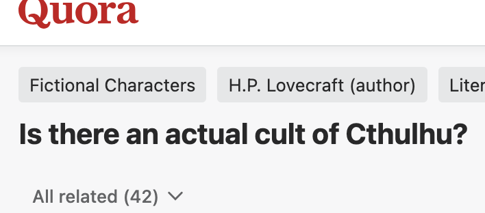 With humanity, there is a bit more hybridization. Our lifeworlds, like those previously listed, take into account our shared anatomies, as well as the material conditions of time and place, but then there is the added influence of that horribly amorphous entity known as culture. Culture is the accumulation of all the ways we describe the world to ourselves through our own Weird Fictions. These fictions are most prized not for their Absolute Truth, but for their use-value. In that way, religious, philosophical, and scientific answers may all satisfy the same need in their own way, and to that end they will become inscribed into the Weird Fiction of their respective culture.
